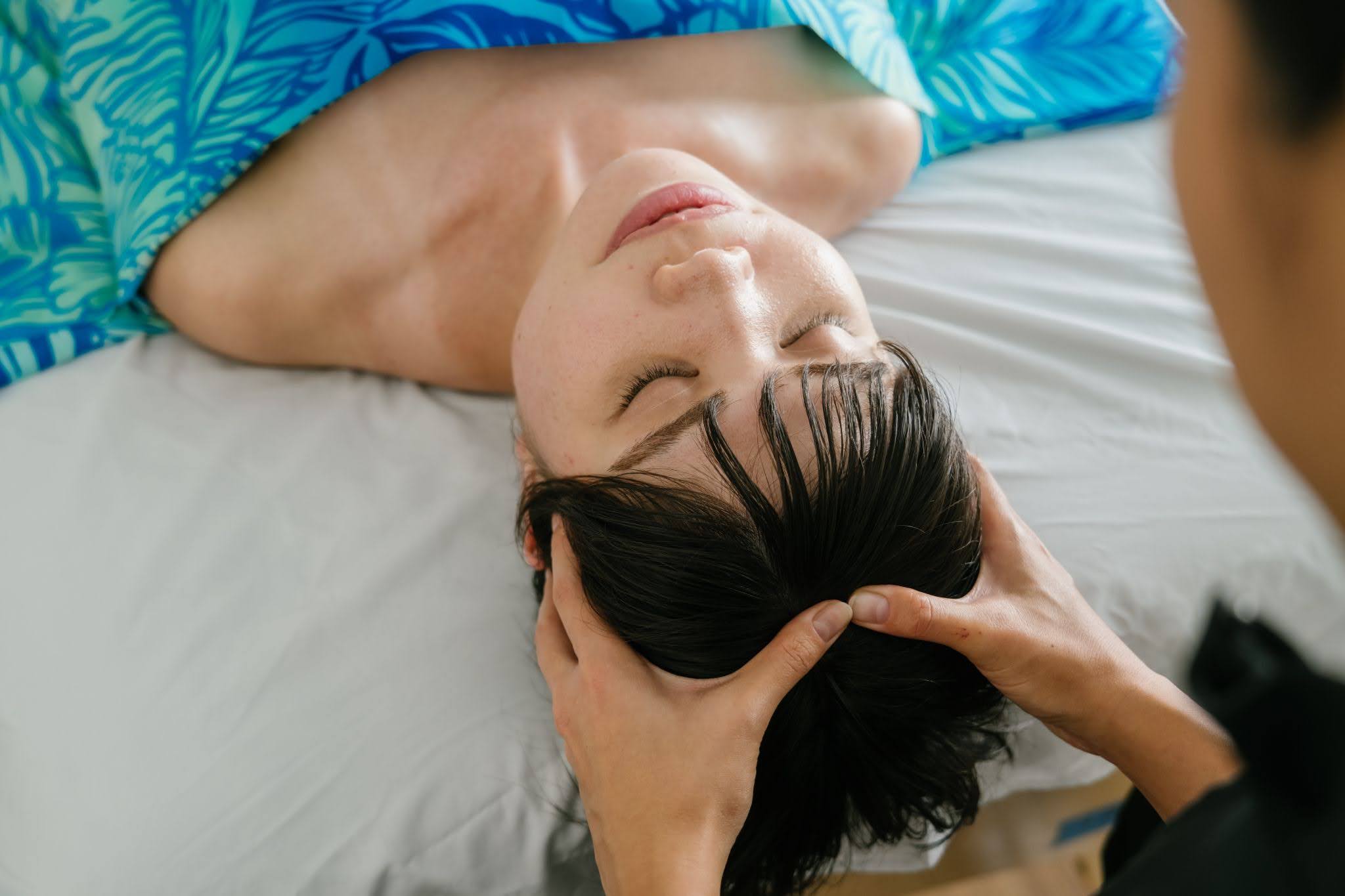 全身のマッサージは背面から始まり、手や足をほぐし、最後はヘッドマッサージで締めくくります。頭のてっぺんから足の先まで癒します。至福の時間をお過ごし頂けます。