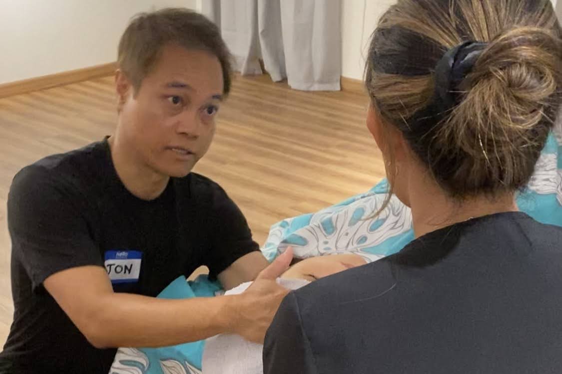 セラピストの体に負担をかけずに、パワフルなマッサージができる方法を学ぶマッサージ講座。