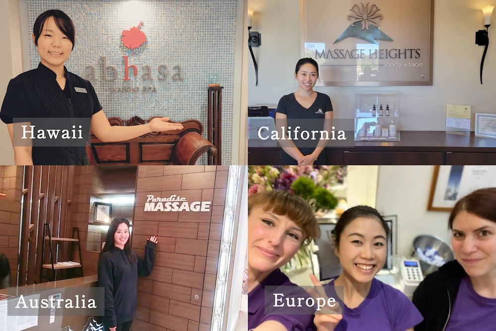 Graduates of Lomino Hawaii Massage School are active around the world, including in Hawaii, the U.S. mainland, Japan, Australia, Europe, and beyond. By mastering Lomi Lomi techniques based on massage theory, they build a strong foundation for success on the international stage.